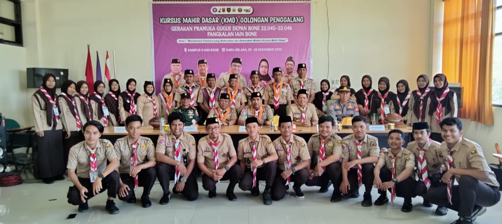 Bone – Dewan Racana Pandega La Patau Matanna Tikka dan We Bataritoja Gerakan Pramuka Gugus Depan 22.045 dan Gugus Depan 22.046, Institut Agama Islam Negeri (IAIN) Bone, Sulawesi Selatan menyelenggarakan Kursus Pembina Pramuka Mahir Tingkat Dasar (KMD) Golongan Penggalang tahun 2023, Rabu (20/12/2023).