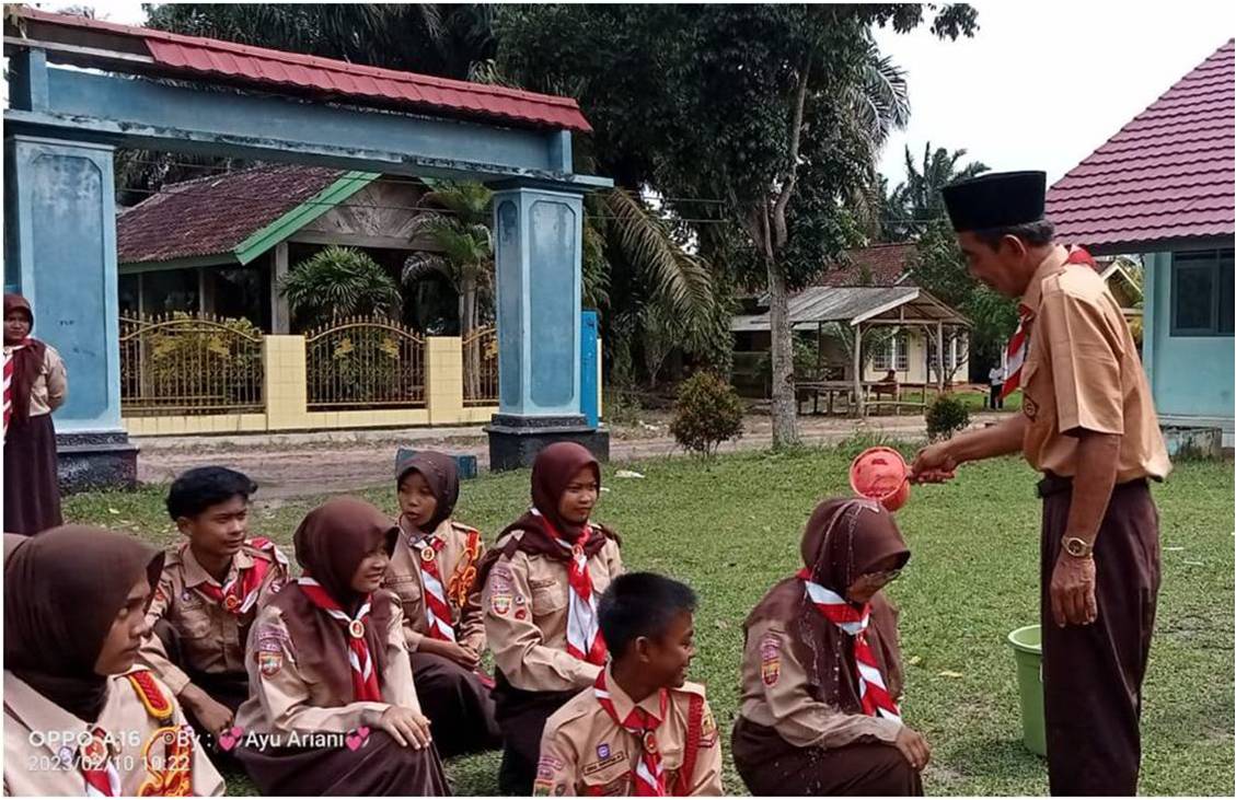 Teluk Gelam — Gugusdepan 16-041 dan 16-042 Pangkalan SMP Negeri 4 Teluk Gelam mengadakan kegiatan Pelantikan Kenaikan Tingkat dari Penggalang Ramu ke Rakit dan Rakit ke Terap, Jumat (10/2/2023).